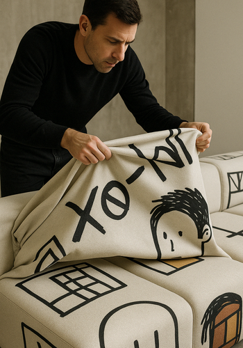 Modular sofas with removable designer covers. Personalize your space effortlessly.